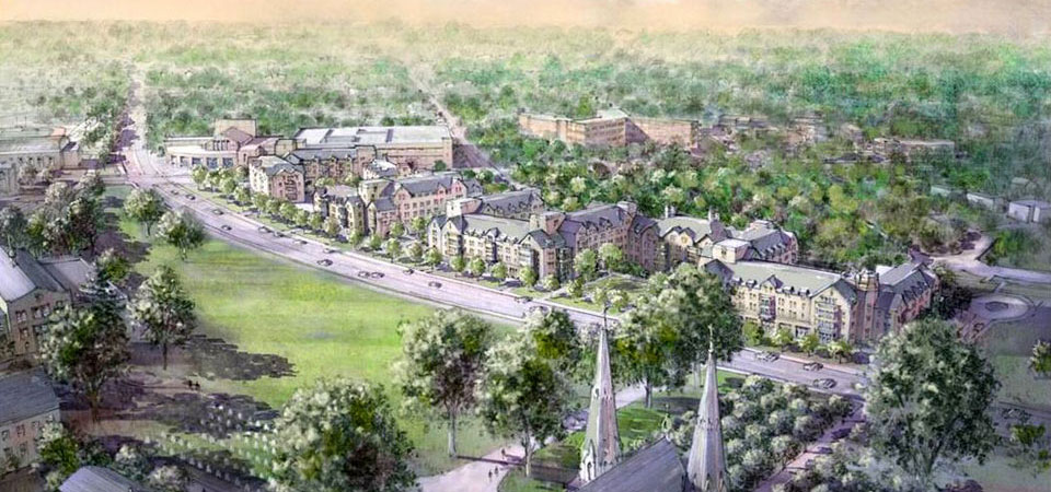 The project calls for some desperately needed dorms, which would be geared primarily towards juniors and seniors who live off campus. In addition, there would be construction of a four-level parking garage to accommodate the students who live in those dorms. There would also be a relatively small performing arts center built across the street from the new dorms, which would align well with our strong Masters in Theatre program.