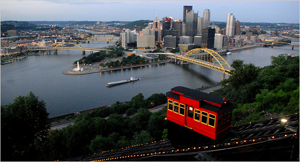 The Duquesne Incline is one of the must-see and do attractions in Pittsburgh. The Incline is essentially a single trolley car that goes up and down the side of Mt. Washington, offering spectacular views of the city, the three rivers, and all of its bridges.