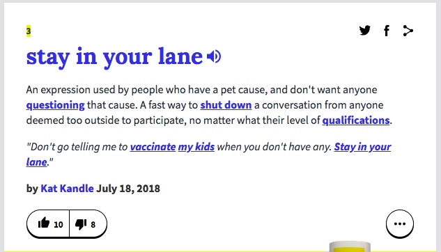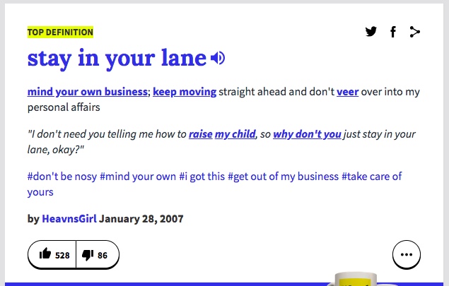 While it’s easy enough to tell from the commercial what the tattoo artist means when he tells his victim customer to stay in his lane, I still wanted to check online just to be sure.